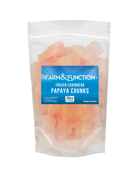 Farm & Function Frozen Papaya is perfect for making smoothies, as fruit-cubes in your favourite juices or in club soda or can be used to make amazing desserts and fruit parfaits. The benefits of papaya are tremendous and provides more than half of your daily vitamin C requirements in one serving!
