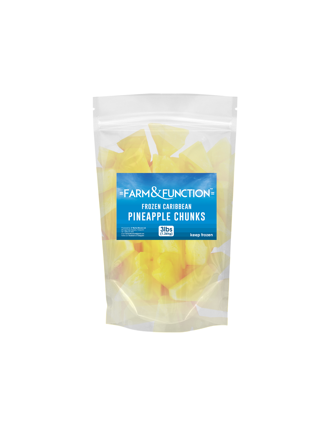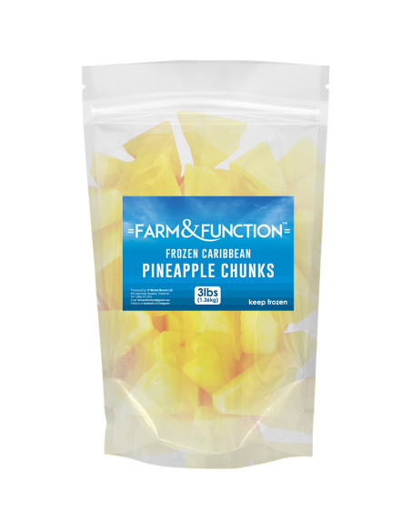 Support Local Today! This 3lb packet contains individually, quick, frozen pineapple chunks, in a re-sealable stand up pouch with zero additives or preservatives!