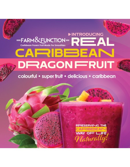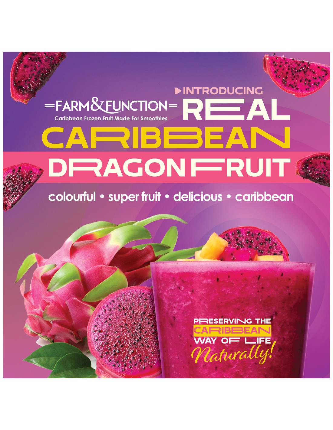 Farm & Function Fruition Blends with Dragonfruit is the perfect Smoothie Pack! Farm & Function is the only 100% locally grown frozen fruit product in T&T! Support local farmers and your community today by enjoying our 100% frozen fruit packs with zero preservatives or additives!