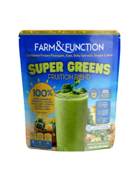Super Green Frozen Fruit Mix creates the perfect tropical Smoothie! Farm & Function is the only 100% locally grown frozen fruit product in T&T! Support local farmers and your community today by enjoying our 100% frozen fruit packs with zero preservatives or additives! Each pack makes 4 x 16oz smoothies.