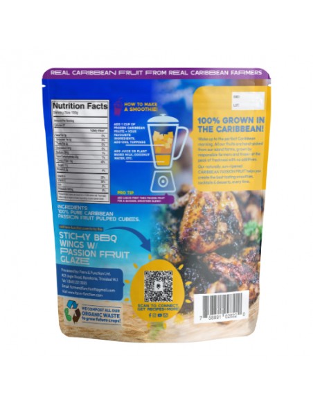 Each pack contains 454g of frozen passionfruit cubes with zero additives or preservatives. All our fruits are locally grown right here in T&T!
