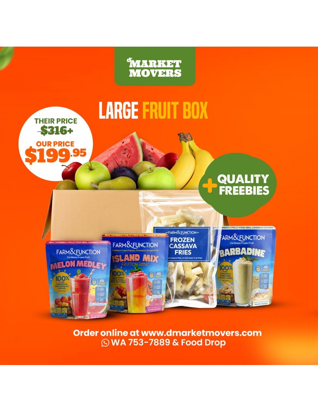 This Ease-sential fruit box Large has your 'five a day' servings of fruit for the week plus comes with Freebies! Enjoy a mix of eleven units of fruits each day or week and you can customize this combo just the way you like!